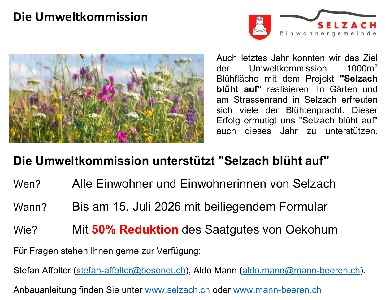 Selzach blüht Auf Selzach Blüht auf hier das zum Formular für Einwohnerinnen und Einwohner von Selzach.